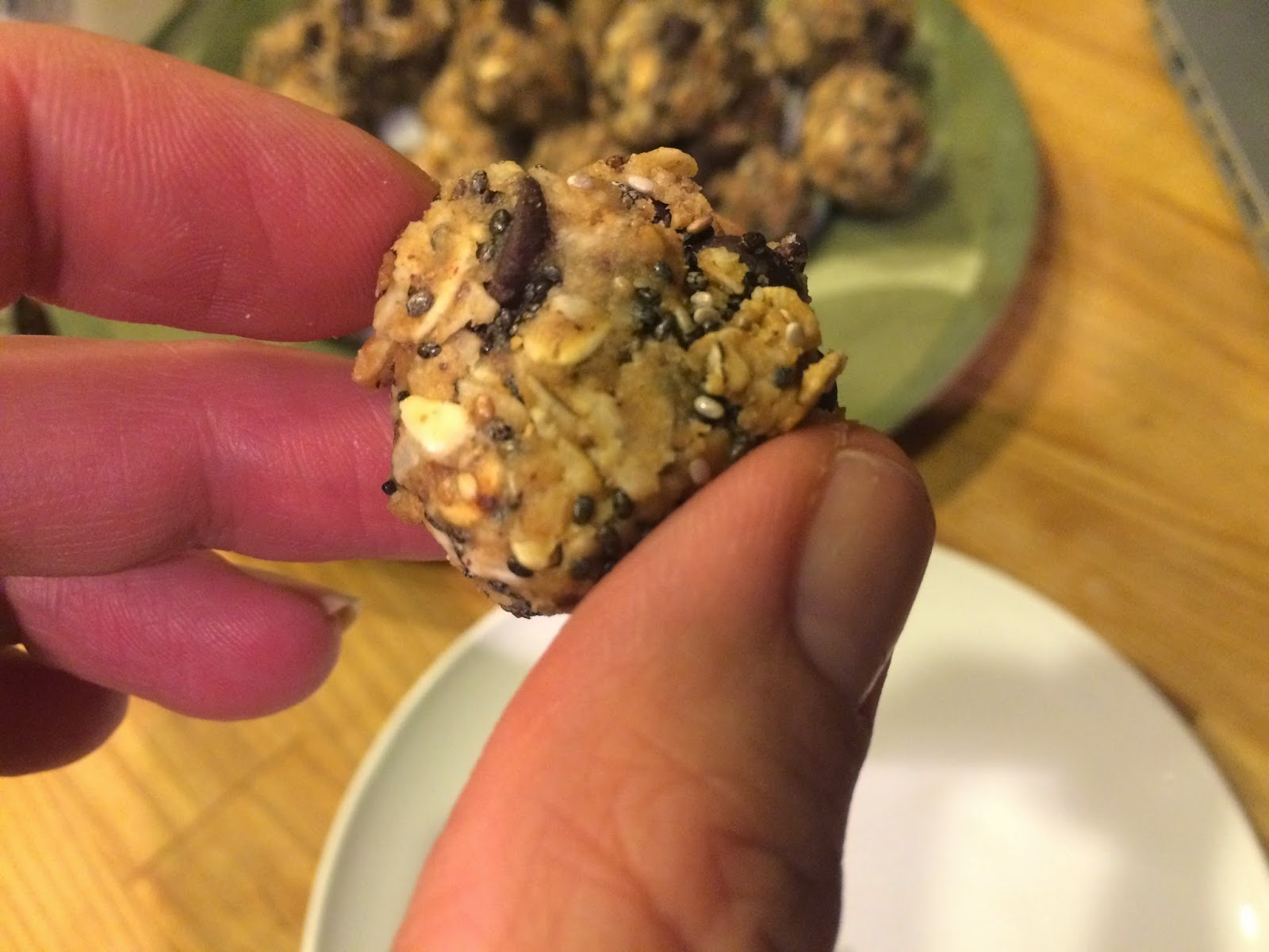 Stir together all of the ingredients and refrigerate for 20 min, then roll into 1 inch balls and enjoy!
