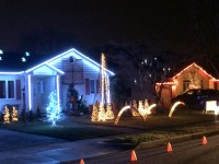 If you visit their facebook page https://www.facebook.com/lightstoabeat or their website, http://www.lightstoabeat.com, you will politely be advised to keep the neighbors in mind by keeping your music low while in the car. There is also a notification that Lights to a Beat is accepting donations for the Make-A-Wish foundation. There is a Make-A-Wish sign and donation box at the sidewalk. The night I was there, many people were getting out of their cars and donating. That’s the holiday spirit!
