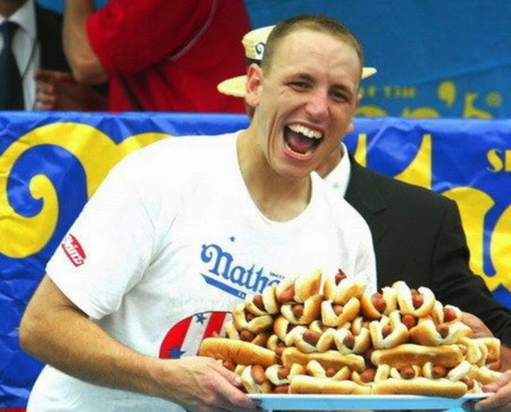 For those who are feeling adventurous and want to brave the crowds to see some world class athleticism, the Coney Island Nathan’s hot dog eating contest will be held on July 4th at 12 noon.Will Joey Chestnut retain his mustard yellow belt? Since Kobayashi still appears to be in a jaw-injury-induced retirement, there are sure to be some promising athletes that could challenge Chestnut’s supremacy. For those who would prefer to enjoy this great American tradition on TV, you can see it on ESPN 3 (if you get that channel) starting at noon and again on ESPN at 2pm. Now that the USA is out of the World Cup, it may be time for Americans to get back to ignoring televised soccer and enjoy a uniquely American event.