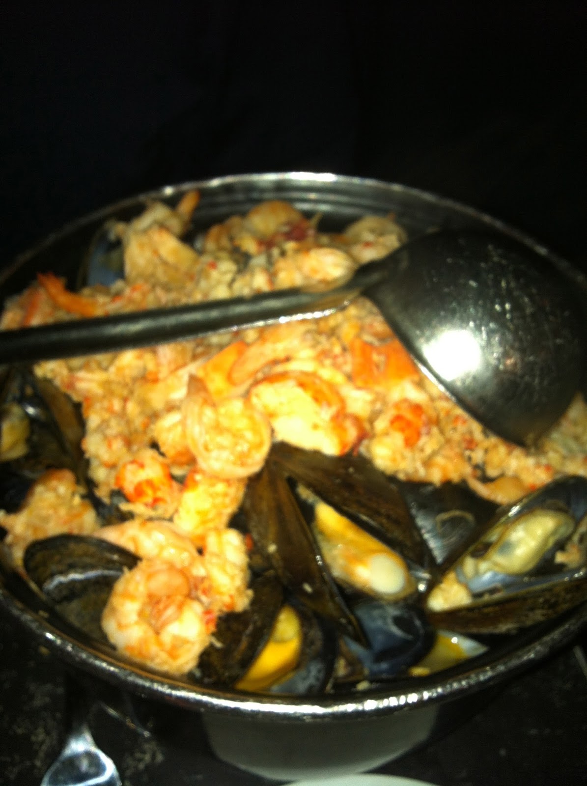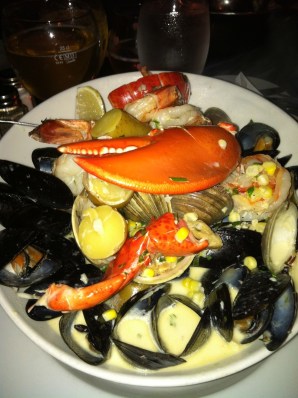 As for the food, there were so many combinations of sauces and toppings for the mussels, it was a tough decision. The bouillabaisse style- topped with shrimp and lobster in tomato/crab broth- was delicious. Of course they were served with crusty bread for dipping (not quite Dom’s bread in Hoboken, but who cares when you’re dipping into yummy seafood broth with a delicious Belgium beer on the side?). I drank the Sophie, which had a slight citrus flavor and was very tasty. It paired well with the Waterzoii entree- jumbo shrimp, lobster, little neck clams, mussels, sweet corn and yukon golds in a creamy broth- which was fantastic. I look forward to trying the escargot, oysters, steaks, lobster mac and cheese, and Belgium waffles for dessert… so many interesting options on the menu, plus friendly service, cool ambiance, Belgium beers… I will definitely be back.