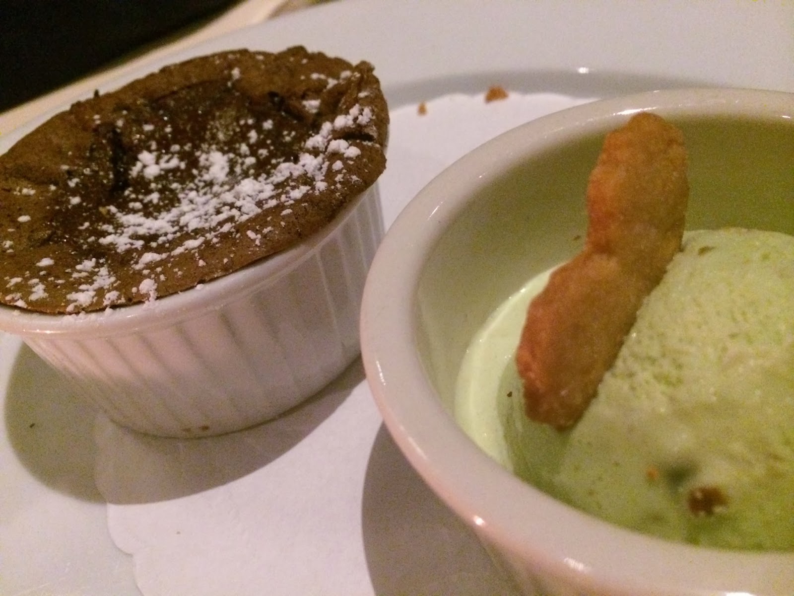 Novita has a unique selection of thin crust pizza and the prices are very reasonable. I recommend the five mushroom truffle if you’re a BIG mushroom lover. What do I mean by mushroom lover? Well… if you eat, sleep and breathe mushrooms, then you will love this pizza, otherwise take a pass. The carbonara pizza sounded interesting (it’s made with sunny side eggs on top) but I wasn’t feeling adventurous enough that night. The chocolate soufflé with pistachio gelato for dessert was yummy but small enough that I could have ordered two. I rarely turn down a chocolate dessert when I see one on the menu, but I noticed some other items that would be worth trying- like the cinnamon zeppoli and the Nutella creme brûlée.